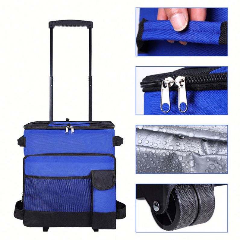 Glacière isotherme réutilisable grande capacité avec poignée télescopique, étanche, pour activités de plein air, pique-niques et livraison de repas
