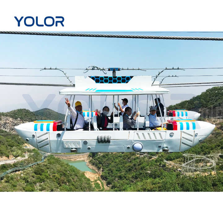 Aventure en plein air, téléphérique métallique, funicular touristique, dirigeable pour le tourisme, les voyages et les excursions