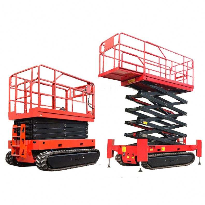 Plates-formes de travail aérien extérieur Terrain accidenté 300kg 6m 10m 12m 14m Élévateur à ciseaux à chenilles hydraulique électrique autopropulsé