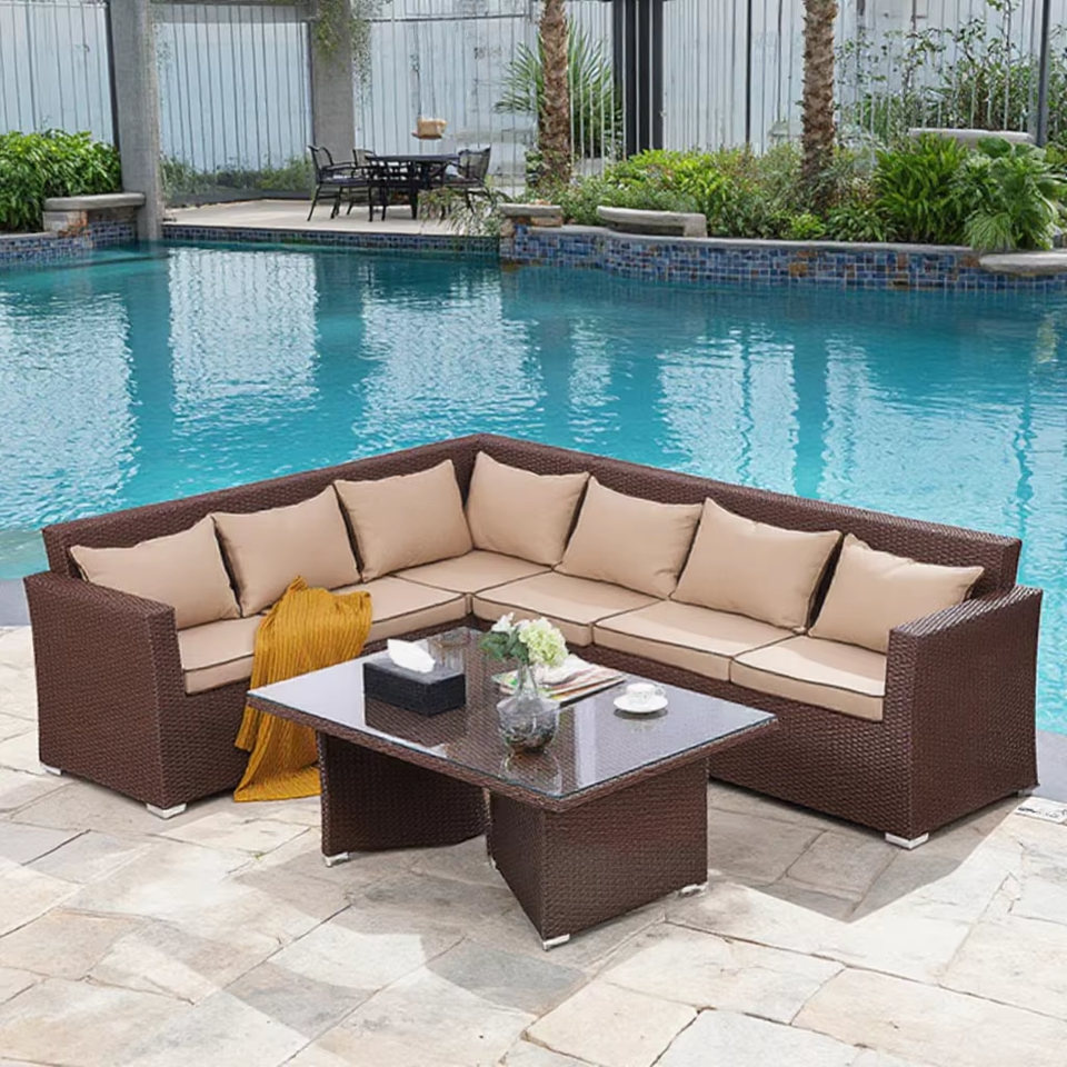 Ensemble de bistrot extérieur à cadre en aluminium avec chaise longue 3 pièces et canapé-lit en rotin pour dîner dans les hôtels, les jardins Design en rotin artificiel