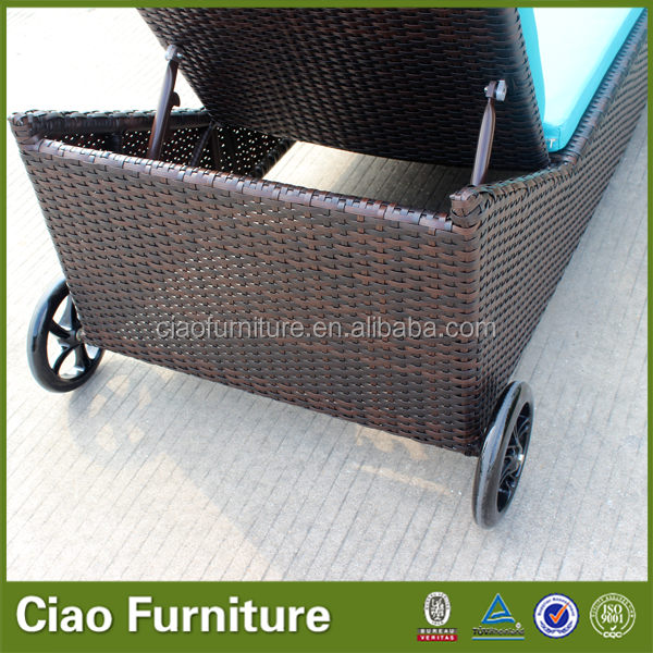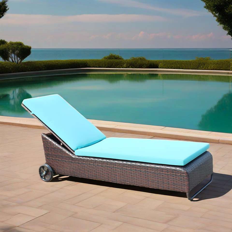 Chaise longue de jardin en aluminium et rotin, transat de piscine pour villa et hôtel, chaise de détente pour cour et plage avec grandes roues