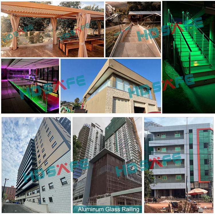 Main courante extérieure en aluminium à canal en U Rampe en verre à LED pour hôtels, centres commerciaux, balcons Barrières en verre pour balustrade, balcon Main courante