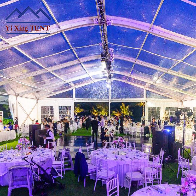 Tente de réception extérieure en forme d'arc à louer, en tissu PVC transparent ignifuge, pour événements et activités, Malaisie