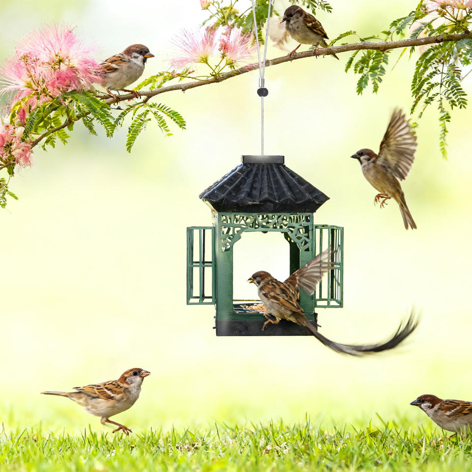 Mangeoire à oiseaux semi-automatique pour balcon extérieur, mangeoire suspendue imperméable pour cour, mangeoire pour moineaux sauvages