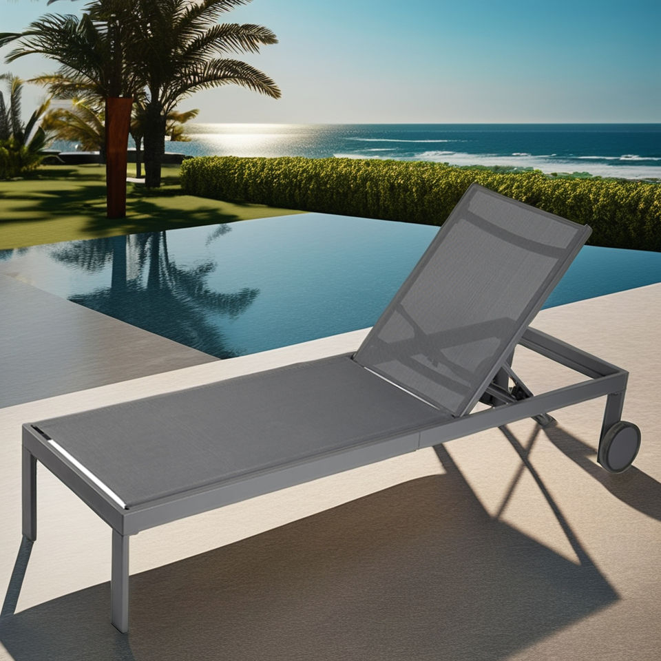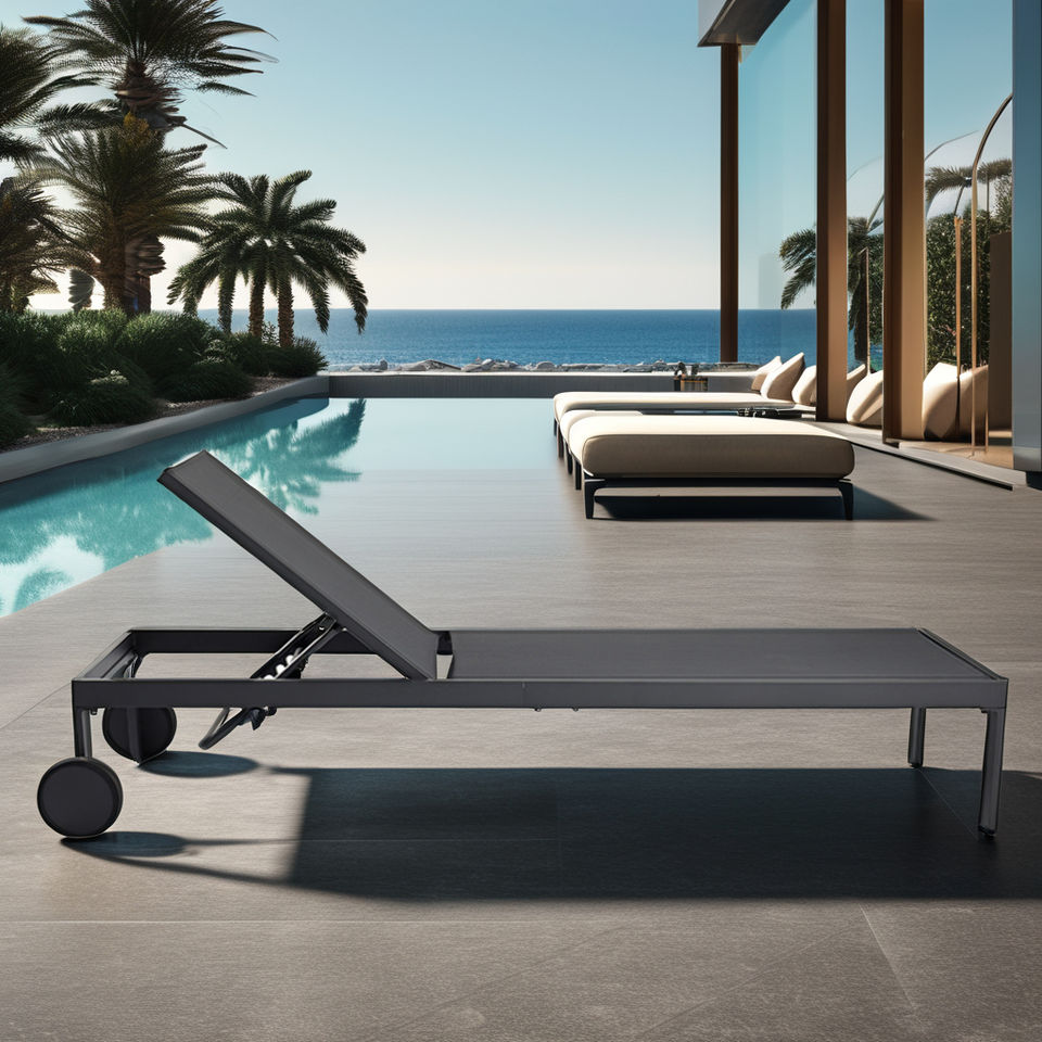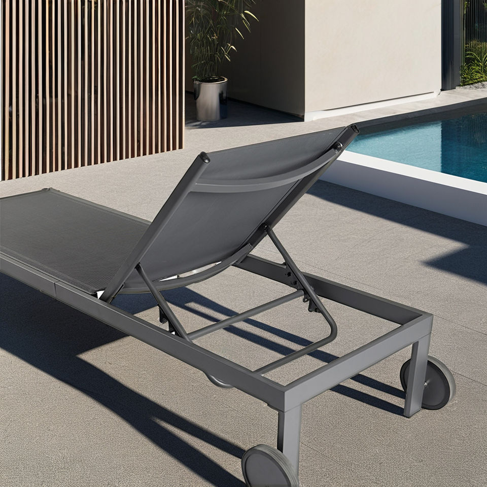 Extérieur Plage Piscine Noir Cadre En Aluminium Hôtel Soleil Lit Inclinable Chaise Longue Chaise Portable Villa Entrepôt