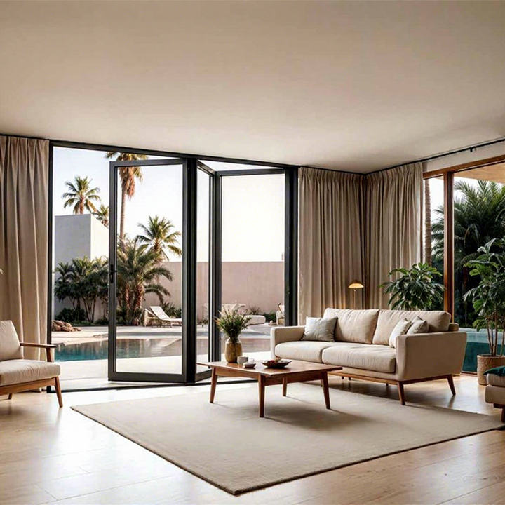 Portes patio pliantes extérieures, verre insonorisé, rupture de pont thermique, porte pliante en aluminium, portes pliantes de 24 pouces