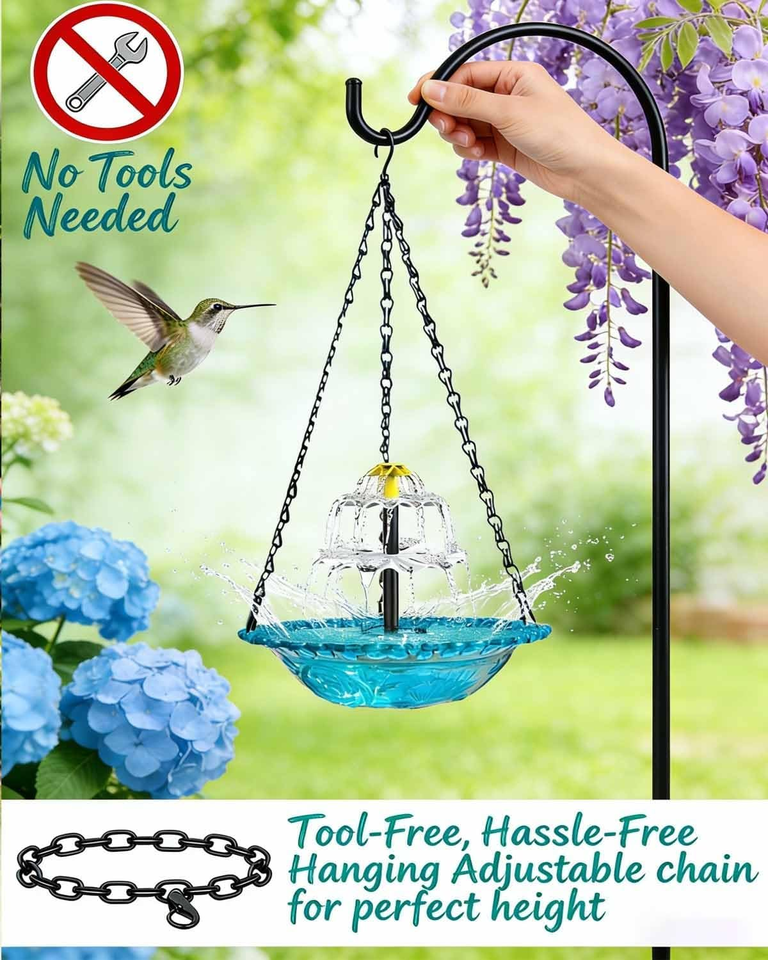 Fontaine Solaire Suspendue à Trois Niveaux en Verre pour Attracteur d'Oiseaux d'Extérieur, Cascade d'Eau Décorative pour Jardin
