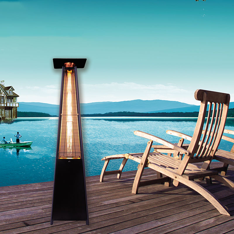 Chauffe-terrasse pyramidal moderne noir en acier inoxydable 13KW, chauffage au gaz portable certifié ETL, chauffage rapide pour terrasse