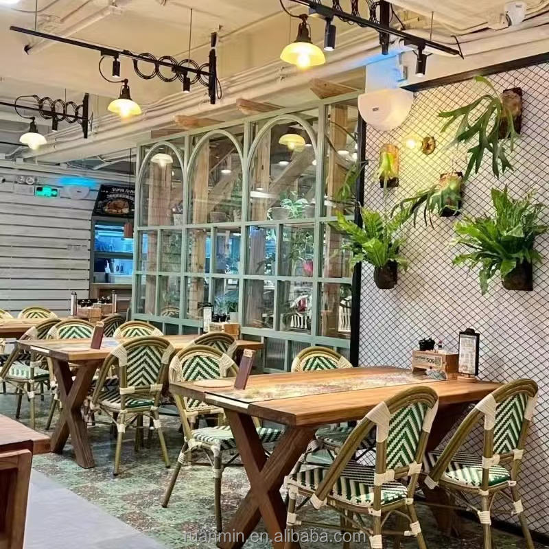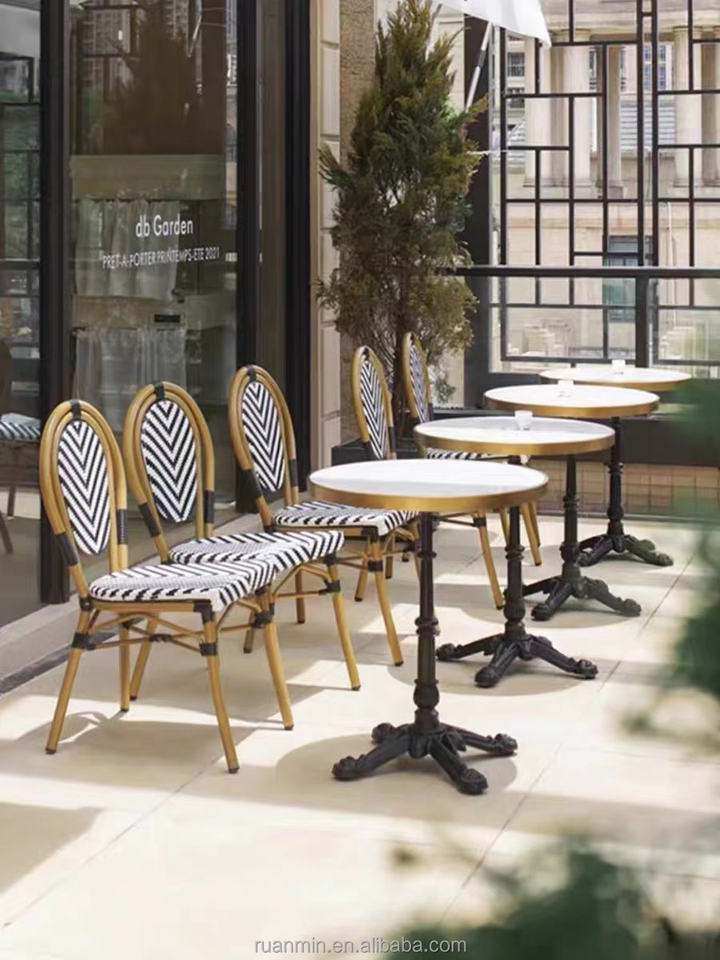 Chaises de salle à manger en rotin PE Outdoor Cafe Courtyard Hotel Bakery Homestay Mobilier d'extérieur français Chaise empilable de luxe