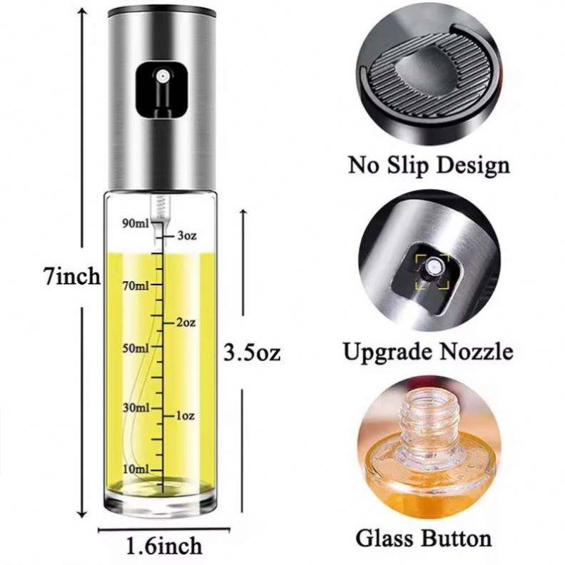Bouteille pulvérisateur d'huile d'olive en verre de 100 ml avec échelle graduée pour la cuisine, le barbecue en plein air, la préparation de salades, la pâtisserie et la friture