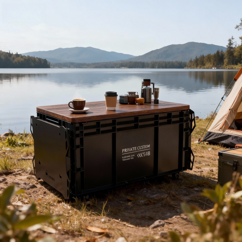 Boîte de rangement pliable pour camping en plein air Boîte en bois pour camping pique-nique Vaisselle de voyage Boîte de rangement pour camping