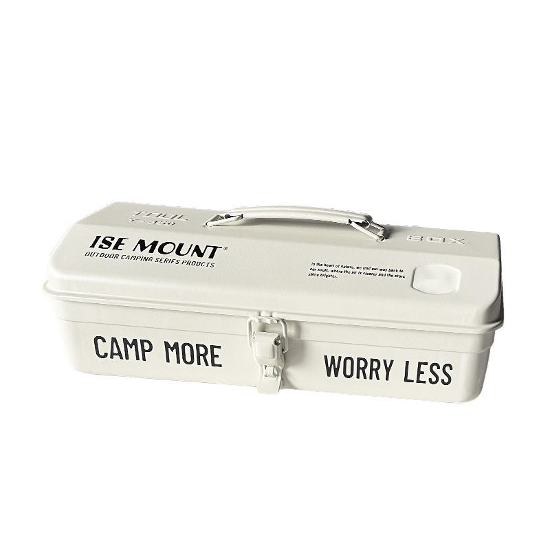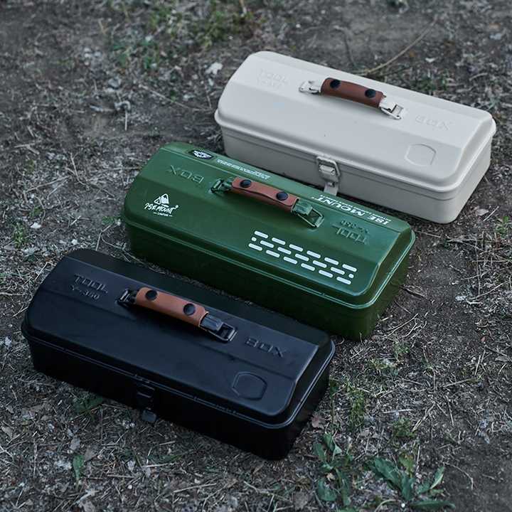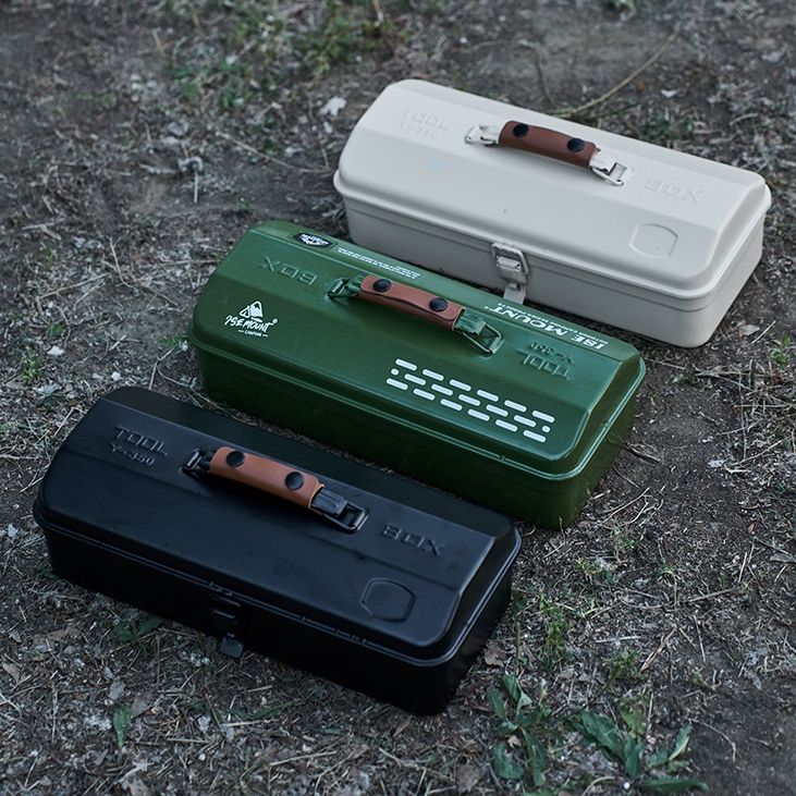 Boîte à outils portable en acier pour camping en plein air, organisateur d'accessoires en métal avec poignée de transport et loquet pour le camping