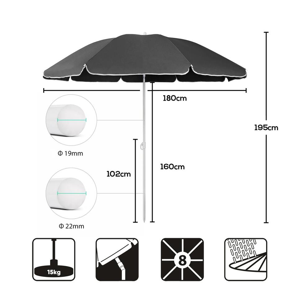 Poteau compact de 180 cm et 19/22mm de diamètre pour l'extérieur, pas cher, 100% polyester, parasol pour balcon, parasol de plage avec sac de transport