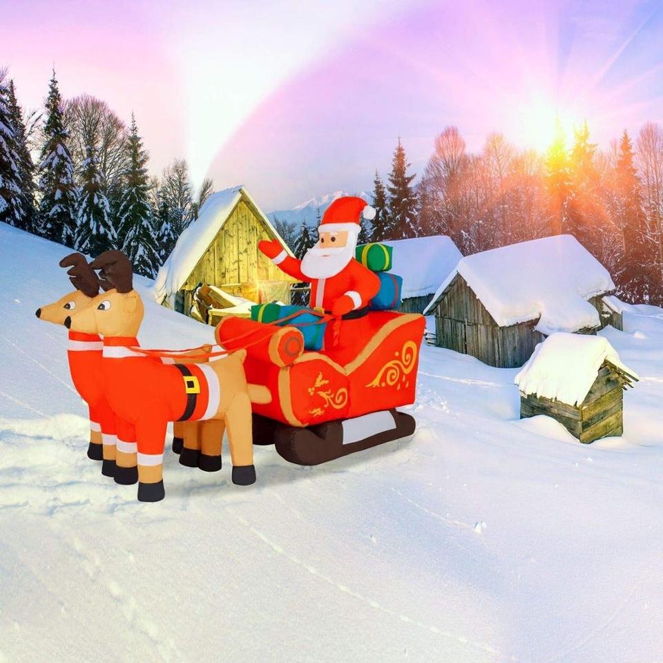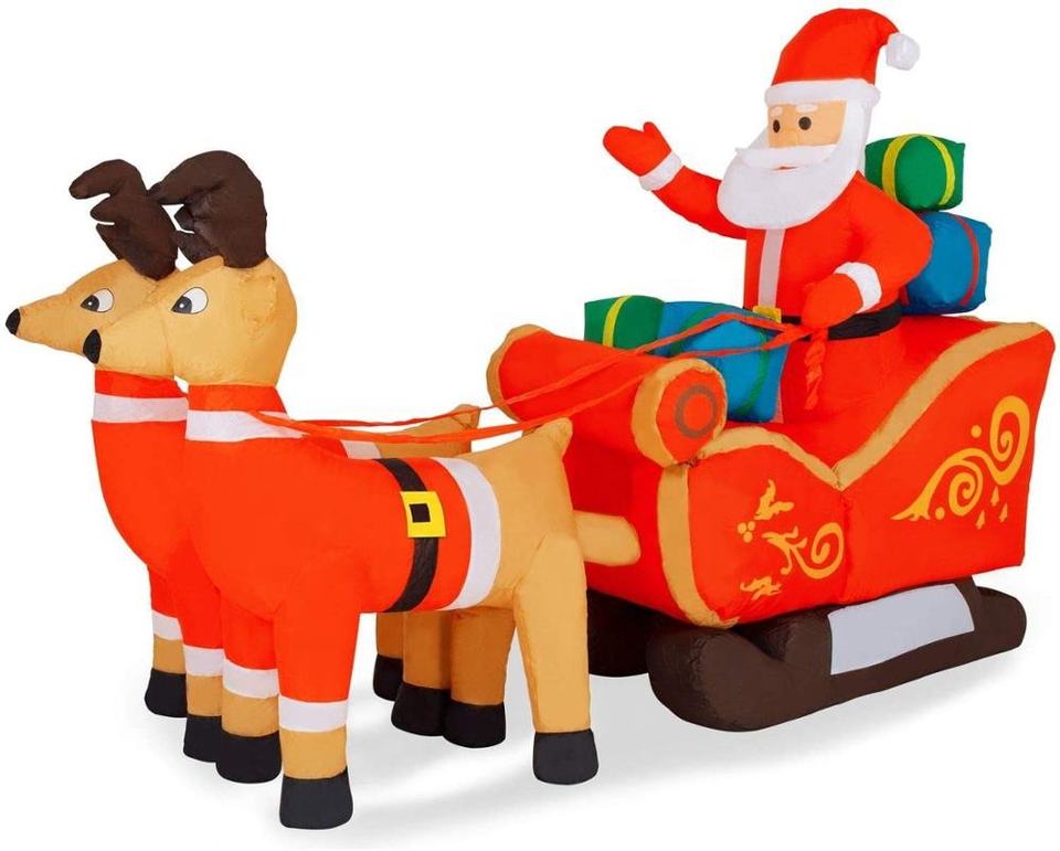 Père Noël gonflable dans un traîneau à rennes