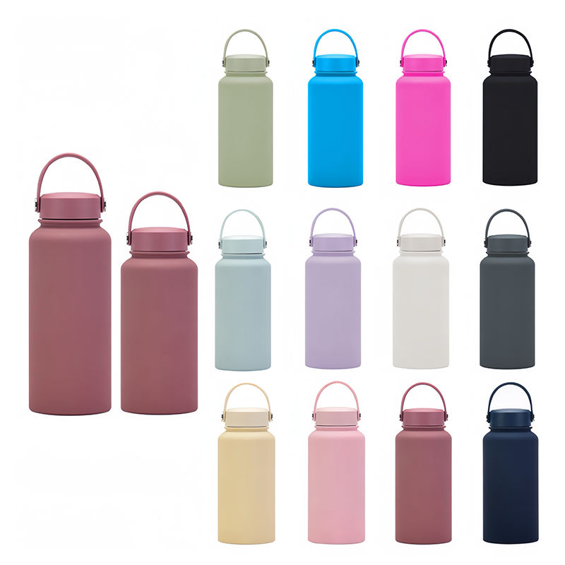 Bouteille d'eau isotherme en acier inoxydable à double paroi avec poignée et manchon, pour l'extérieur