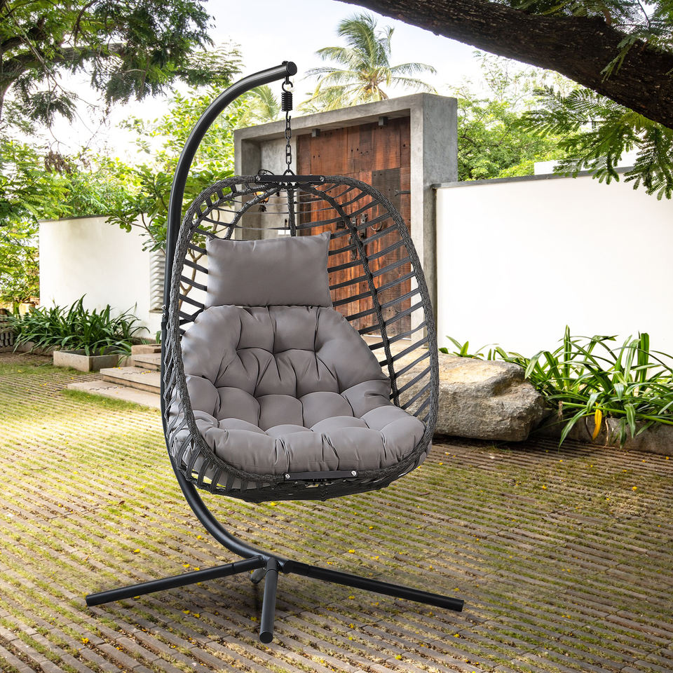Outdoor Comfort Wicker Hammock Chair PE Rattan Folding Hanging Swing with Thick Cushion & Stable Metal Stand