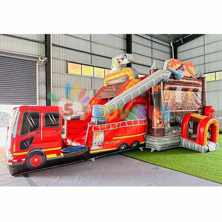 Grand château gonflable commercial extérieur de camion de pompiers de zamek de dmuchany avec la glissière pour la location de partie