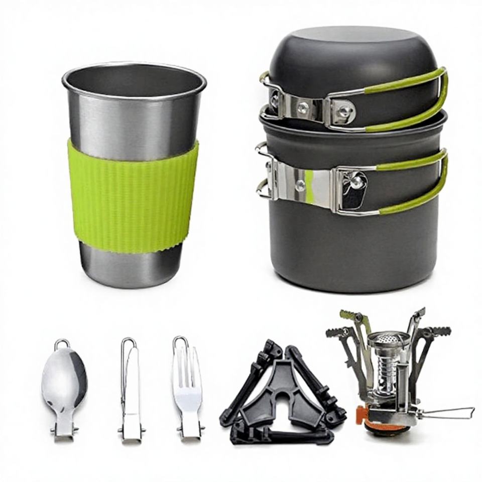 Ensemble de cuisine d'extérieur 12 pièces 1-2L, kit de cuisinière de camping portable et léger pour la randonnée et les voyages