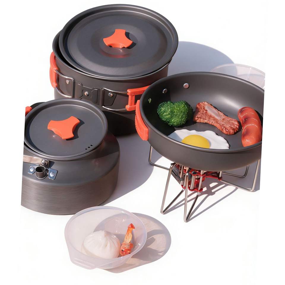 Ensemble de cuisine d'extérieur 3-4L, casseroles et poêles antiadhésives portables pour le camping, vaisselle pour 2-3 personnes