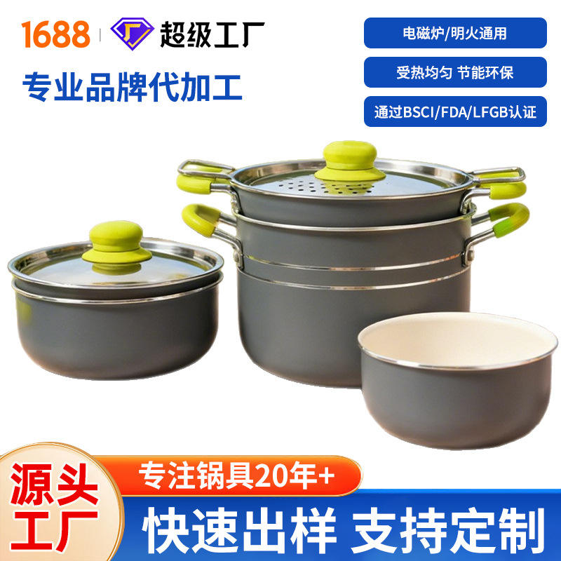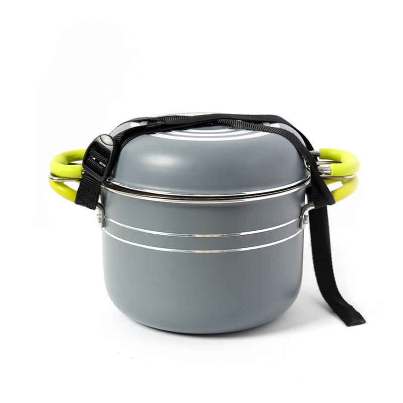Ensemble de cuisine d'extérieur 5 pièces, pot en émail antiadhésif avec couvercle pour la cuisson en camping