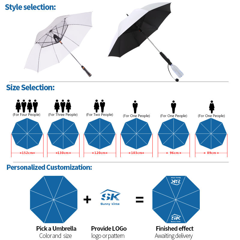 Nom du produit:Parapluie avec ventilateur de refroidissement à brume automatique, nouveau design