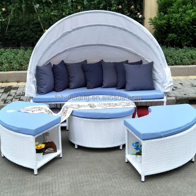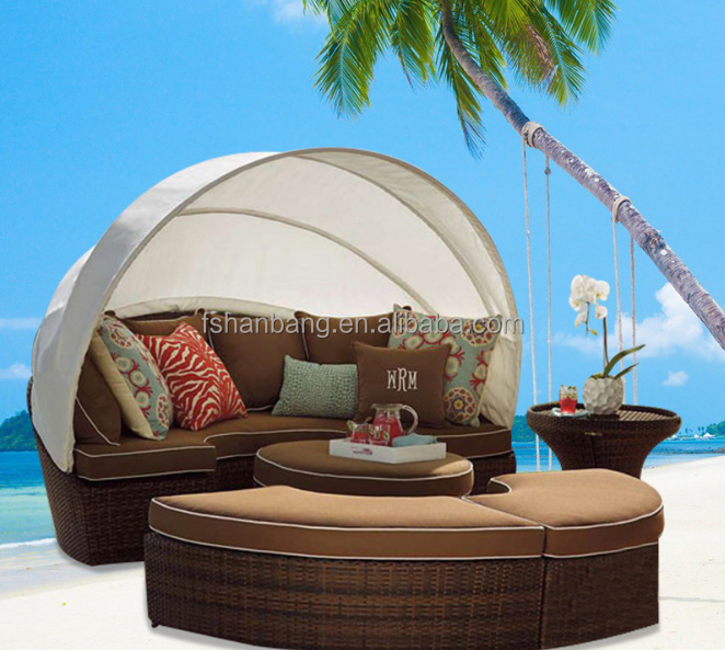 Patio extérieur rotin résine osier rond daybeds avec auvent