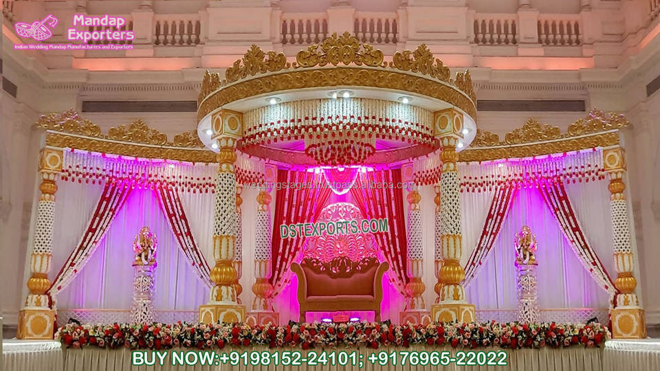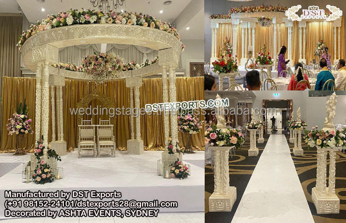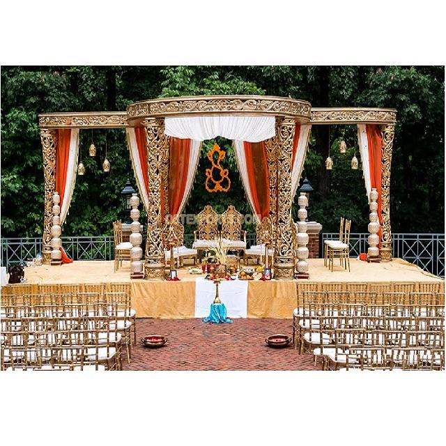 Décoration de Mandap Delizio pour Mariage en Plein Air, Décoration de Piliers Delizio pour Mariage, Décoration de Mandap de Mariage Indien Tendance aux États-Unis