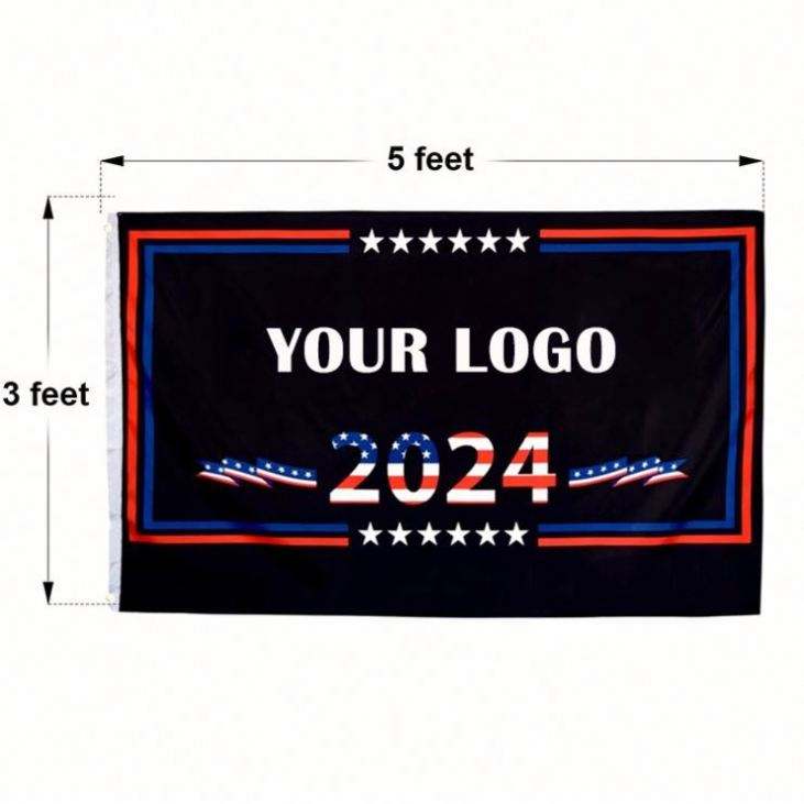 Drapeau américain 2024 personnalisé avec logo et couleur, imprimé en sérigraphie sur polyester durable pour l'extérieur, 3x5 pieds
