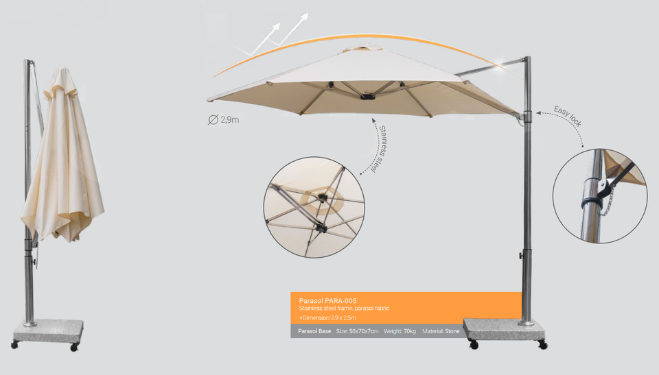 Outdoor Eccentric Parasol Coffee Restaurant Beach Swimming Pool Stable Stainless Steel Patio Umbrellas Outdoor Furniture