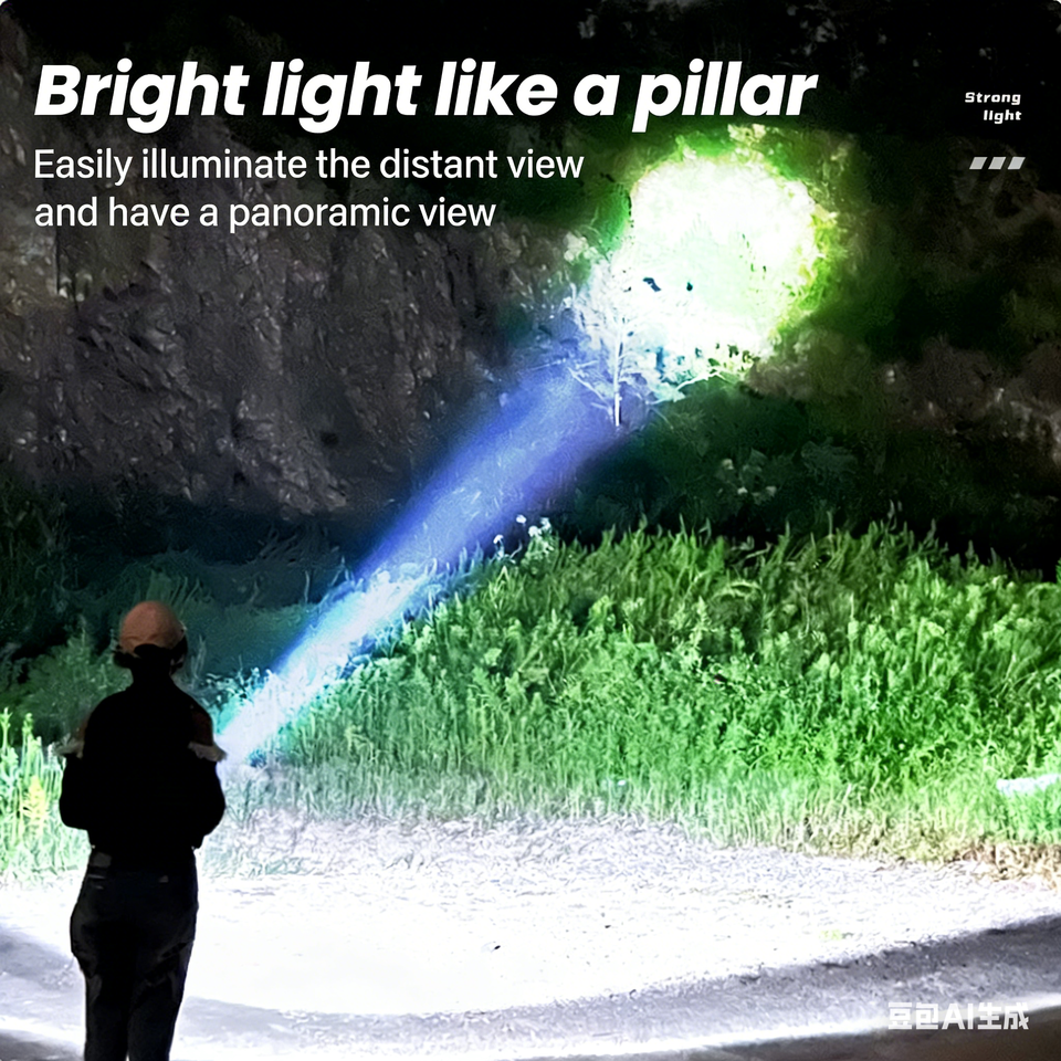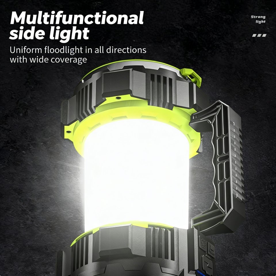 Lampe torche d'urgence extérieure haute puissance longue portée, projecteur multifonctionnel rechargeable avec lumière latérale, grande capacité longue autonomie