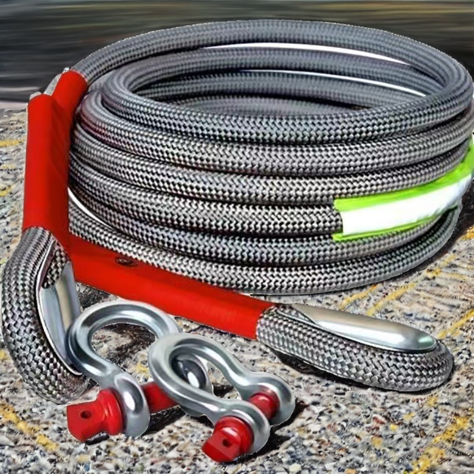 Outils d'urgence en plein air Corde de remorquage en nylon/polyester épais + métal 3M-9M Assistance pour véhicule, camion, remorque Blanc/Beige
