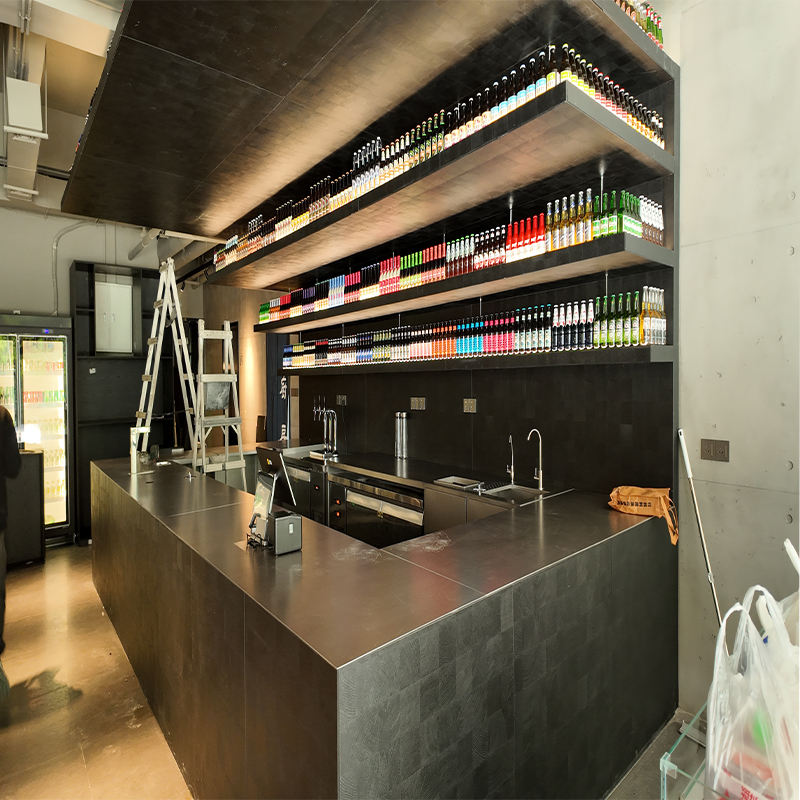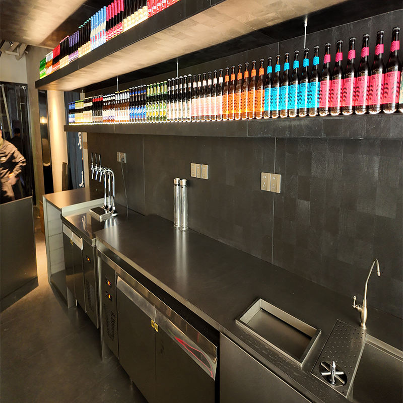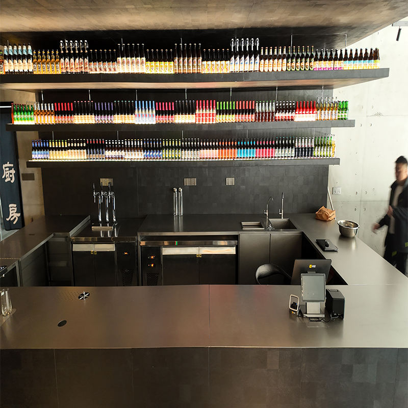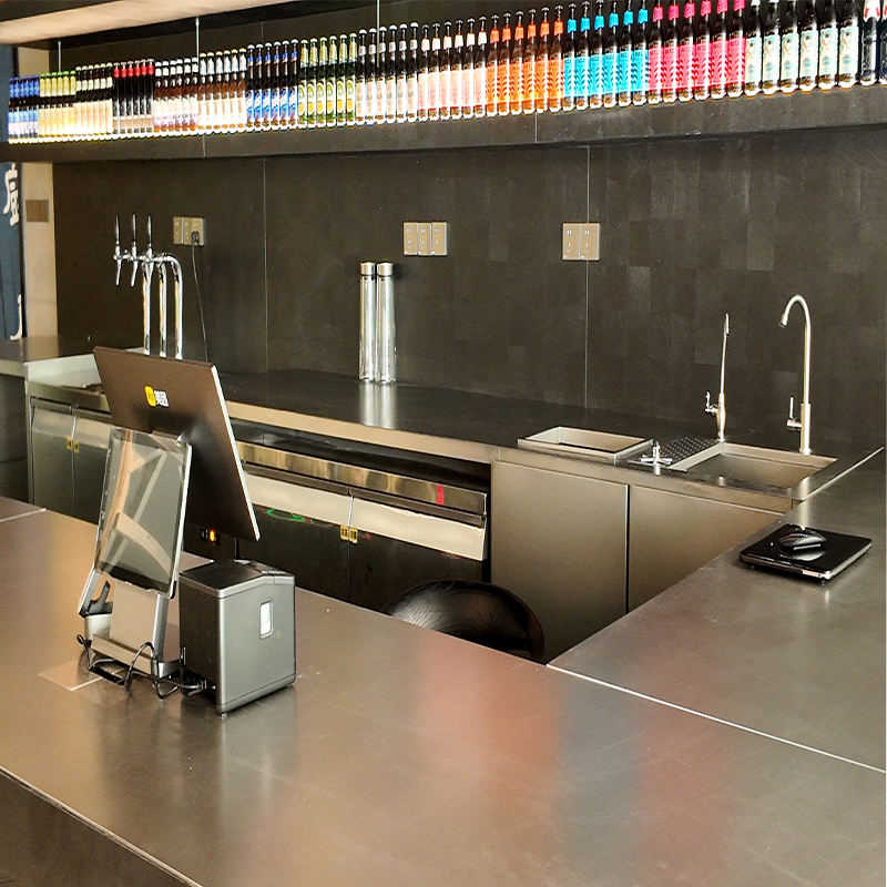 Comptoir de bar en acier inoxydable 304, table de bar commerciale personnalisée avec rangement pour café, restaurant, pub, vente en gros