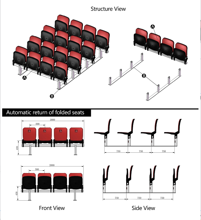 Gradins temporaires pour événements en plein air, sièges de concert, sièges de stade en HDPE à bascule automatique, sièges pliables pour événements sportifs, gradins pour spectateurs