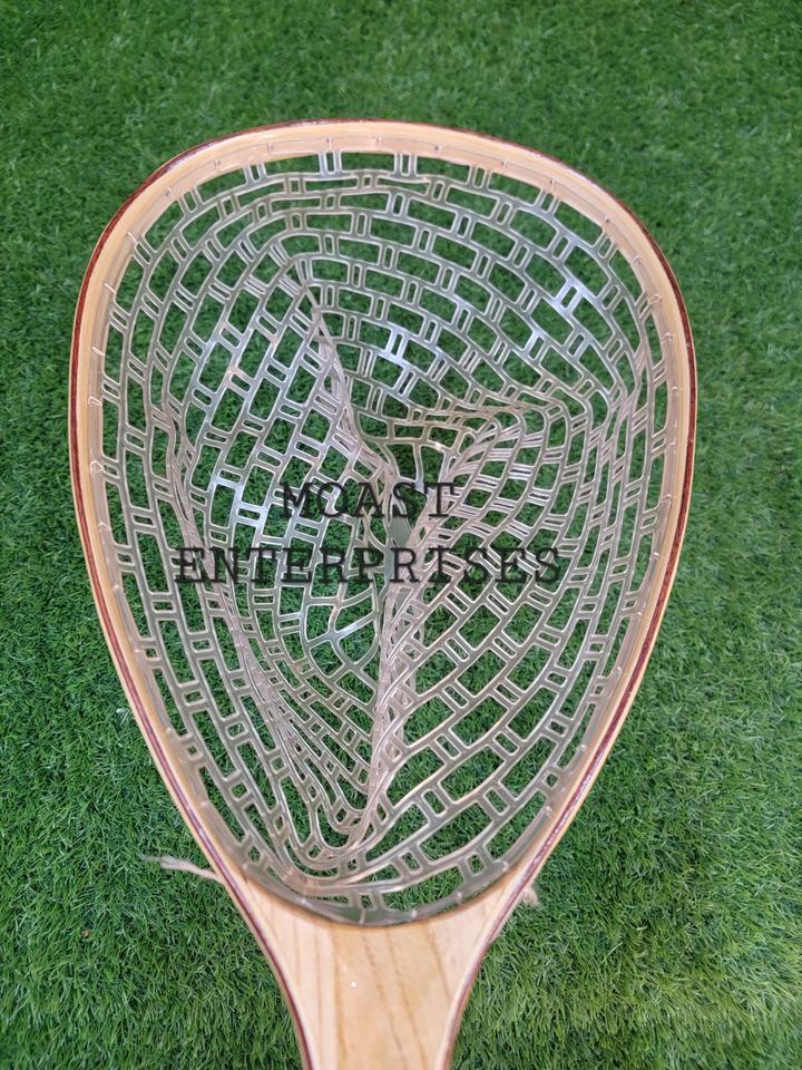 Filet d'atterrissage de pêche à la mouche en plein air Filet à truite Cadre en bois avec filet en caoutchouc Filet coulé à la main Thor Filet de pêche à la truite