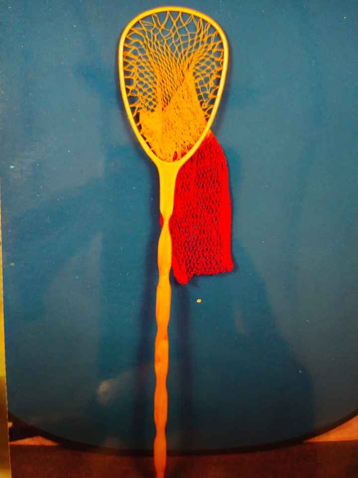 Épuisette de pêche à la mouche d'extérieur avec cadre en bois et filet en caoutchouc, outil de capture de truites à lancer à la main