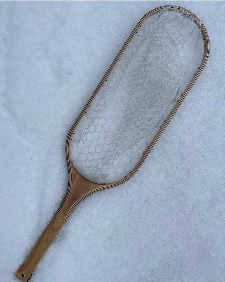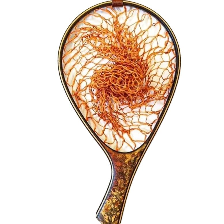 Épuisette de pêche à la mouche d'extérieur avec cadre en bois et filet en caoutchouc, outil de capture de truites à lancer à la main