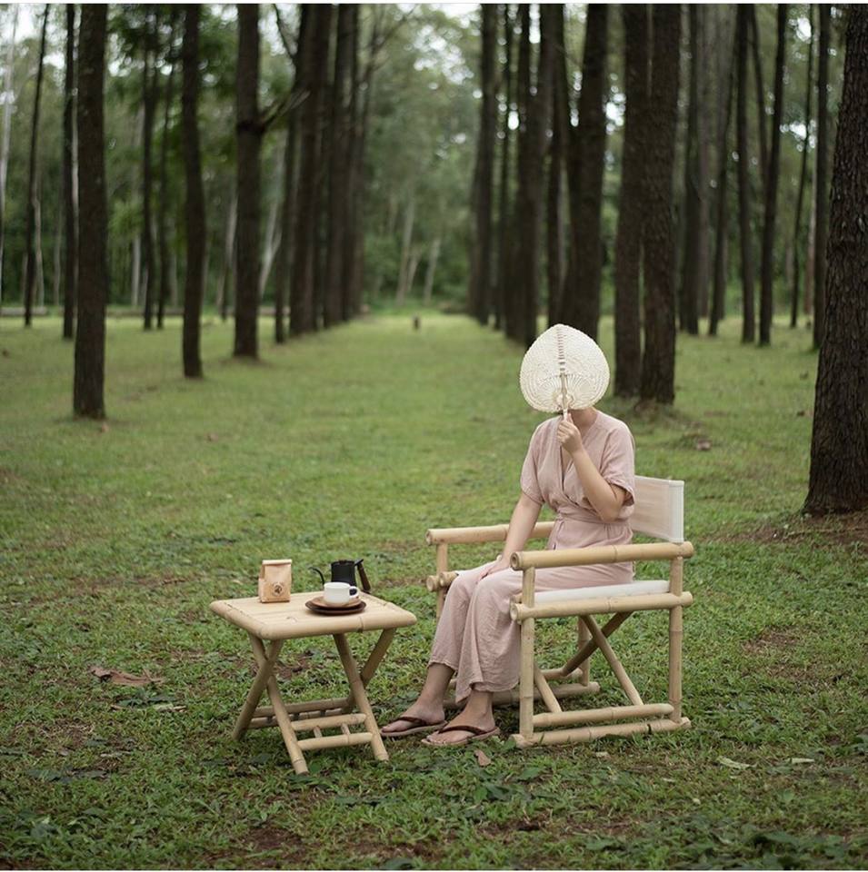 Outdoor Folded Bamboo Chair With Fabric Seat Picnic Garden Sets