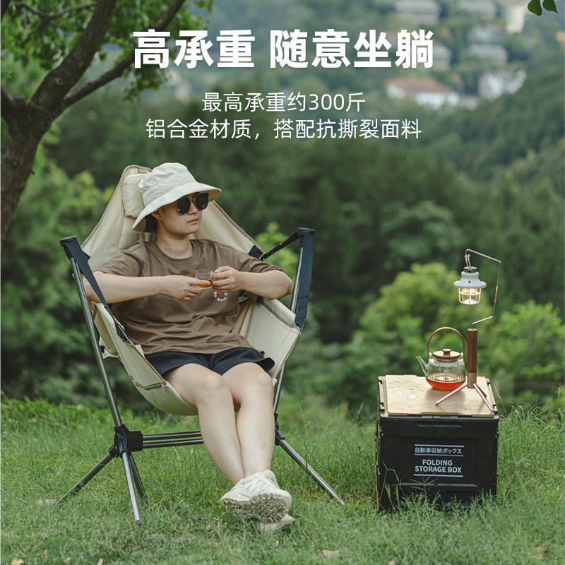 Chaise à bascule pliante d'extérieur en alliage d'aluminium, chaise de jardin portable pour la pêche, chaise à bascule pliable noire de forme ovale pour adulte