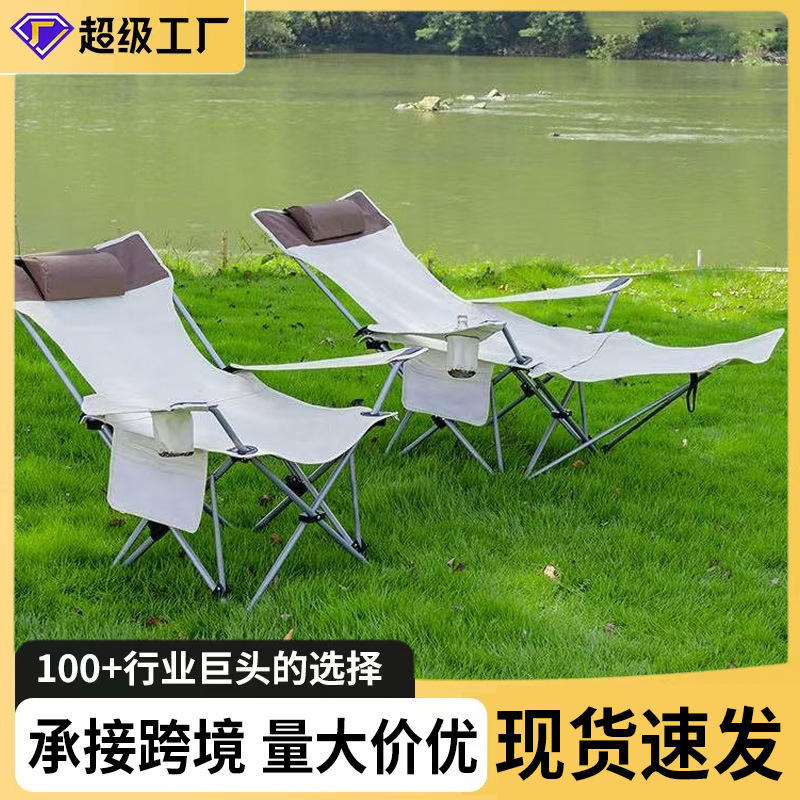 Chaise pliante d'extérieur rectangulaire, pliable, avec hauteur réglable et repose-jambes, pour le camping et les moments de détente
