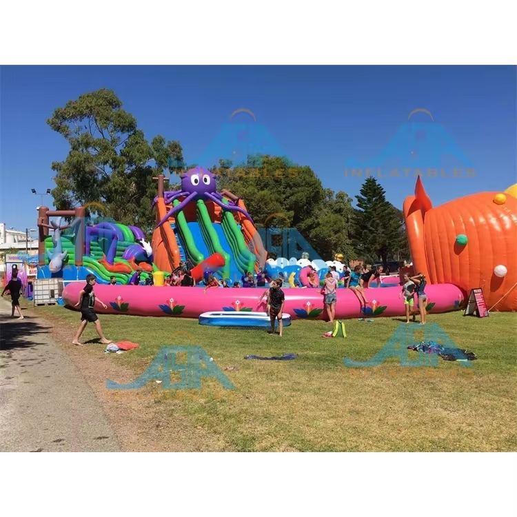 Parc gonflable gonflable de piscine de parc aquatique au sol gonflable d'île d'eau drôle extérieure sur la terre