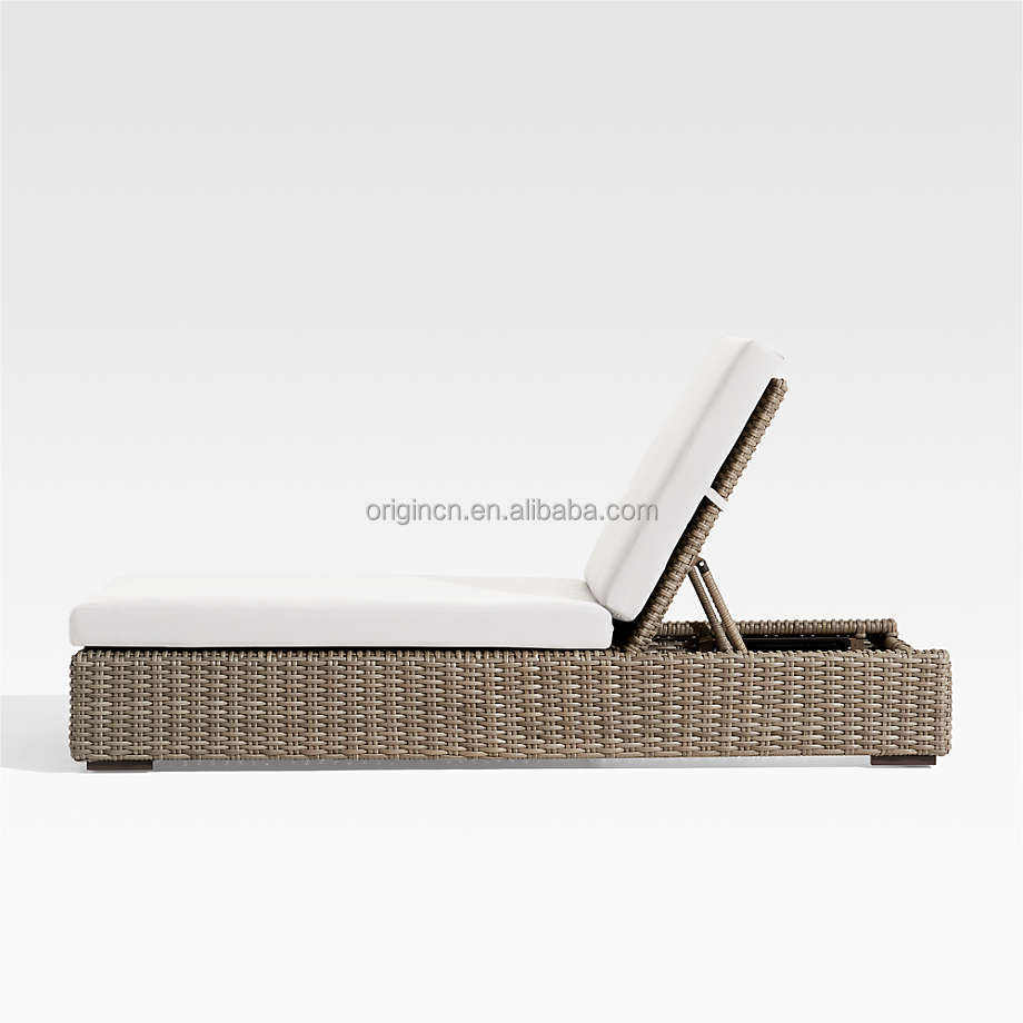 Chaise longue de jardin en rotin tressé à la main avec dossier réglable et structure en aluminium
