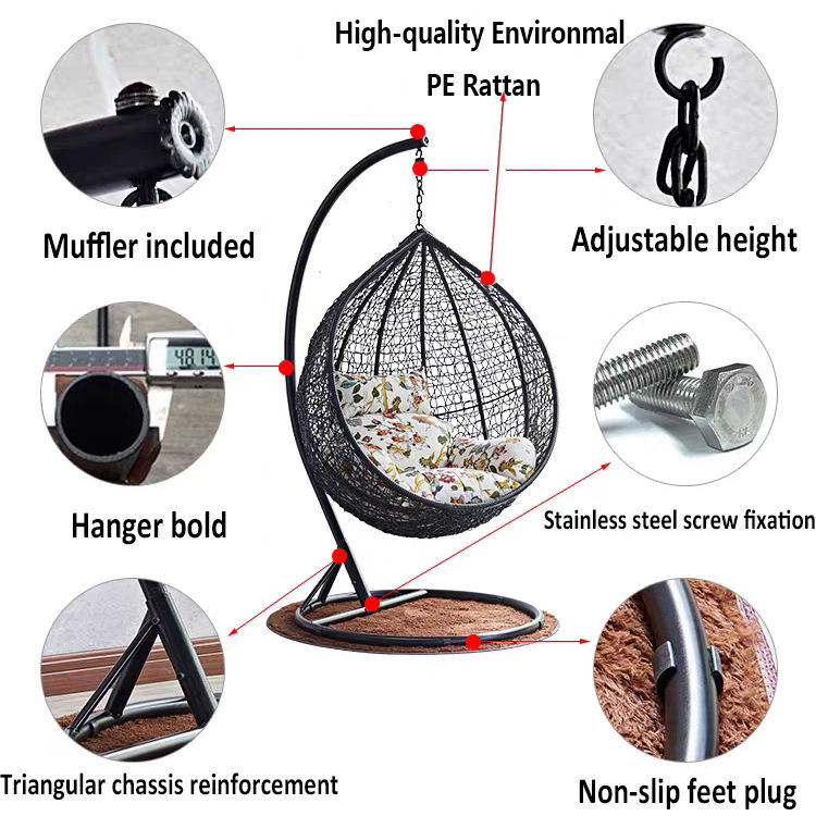 Outdoor Furniture PE Rattan Hanging Swing Garden Egg Rocking Chair with Stand