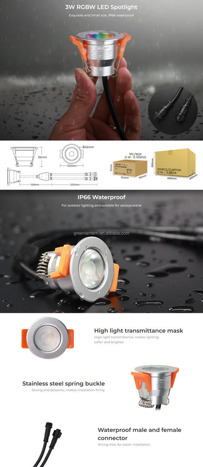 Projecteur LED RGBW miniature 3W étanche IP66 pour extérieur, câble 5 brins, corps en aluminium moderne, 12V, petit spot LED