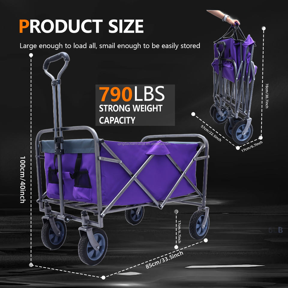 Chariot de plage pliable multifonctionnel pour jardin extérieur, chariot de camping pliable adapté à la pêche, aux fournitures et équipements de jardinage