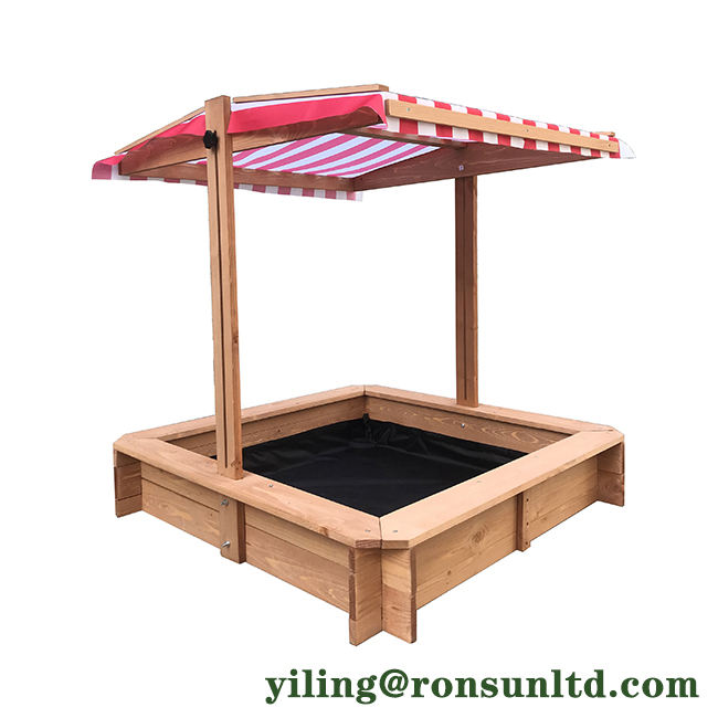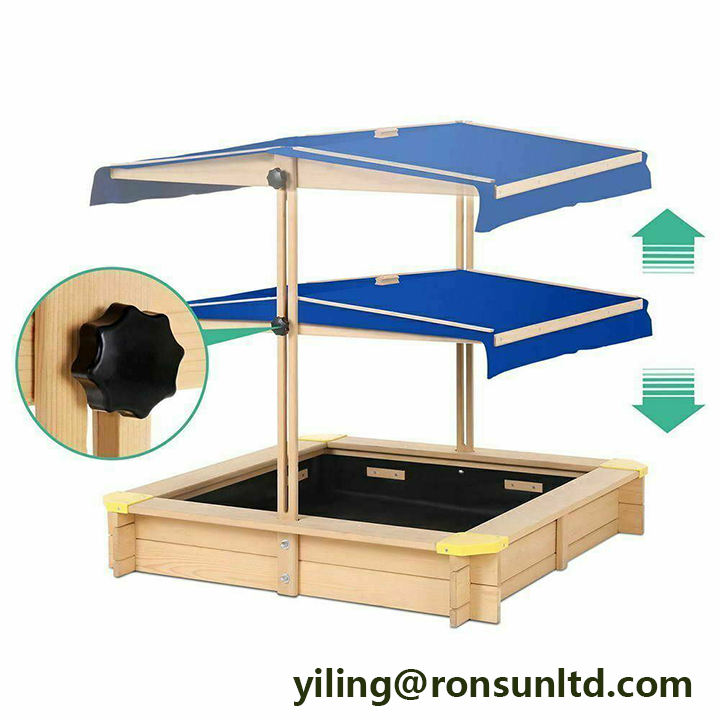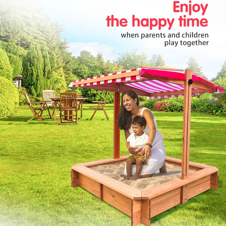 Outdoor Garden Sand Pit Height Adjustable Kids Wooden Sandbox with Roof Canopy Sun Shade