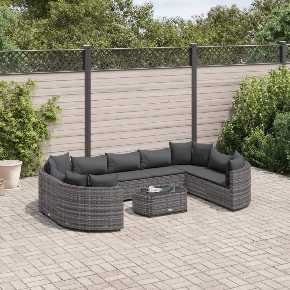 Ensemble de canapés de jardin d'extérieur en rotin gris PE résistant aux UV avec coussins imperméables, mobilier de patio au design élégant