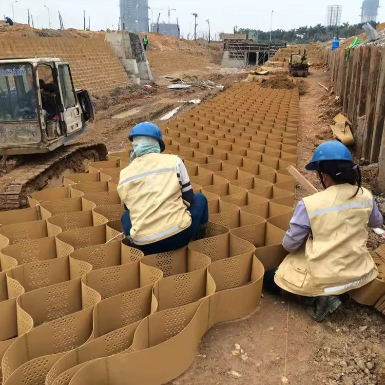 Outdoor, earthwork application, outdoor construction roadway, slope stabilization, retaining wall, cellular confinement porous pavement, load support, reinforce roadApplication