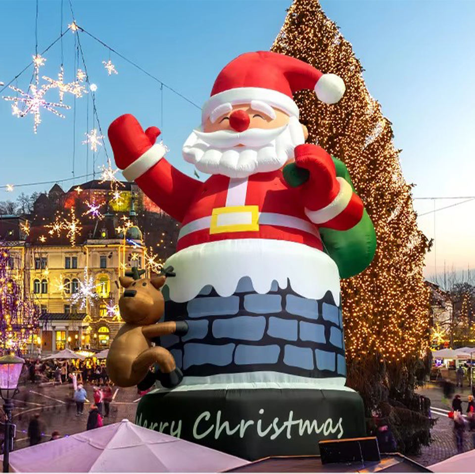 Décoration de Noël gonflable géante de Père Noël pour l'extérieur avec souffleur et ballon, imperméable et résistante aux intempéries