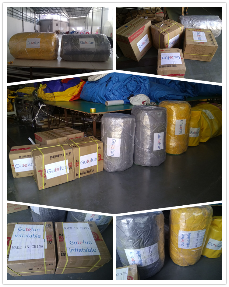 The inflatable car wash booth packed in PVC bag, the electric air pump in carton.