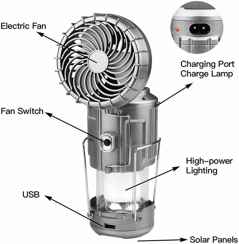 Nom du produit:Lampe solaire menée de tente de lumières de camping de fan avec le crochet accrochant